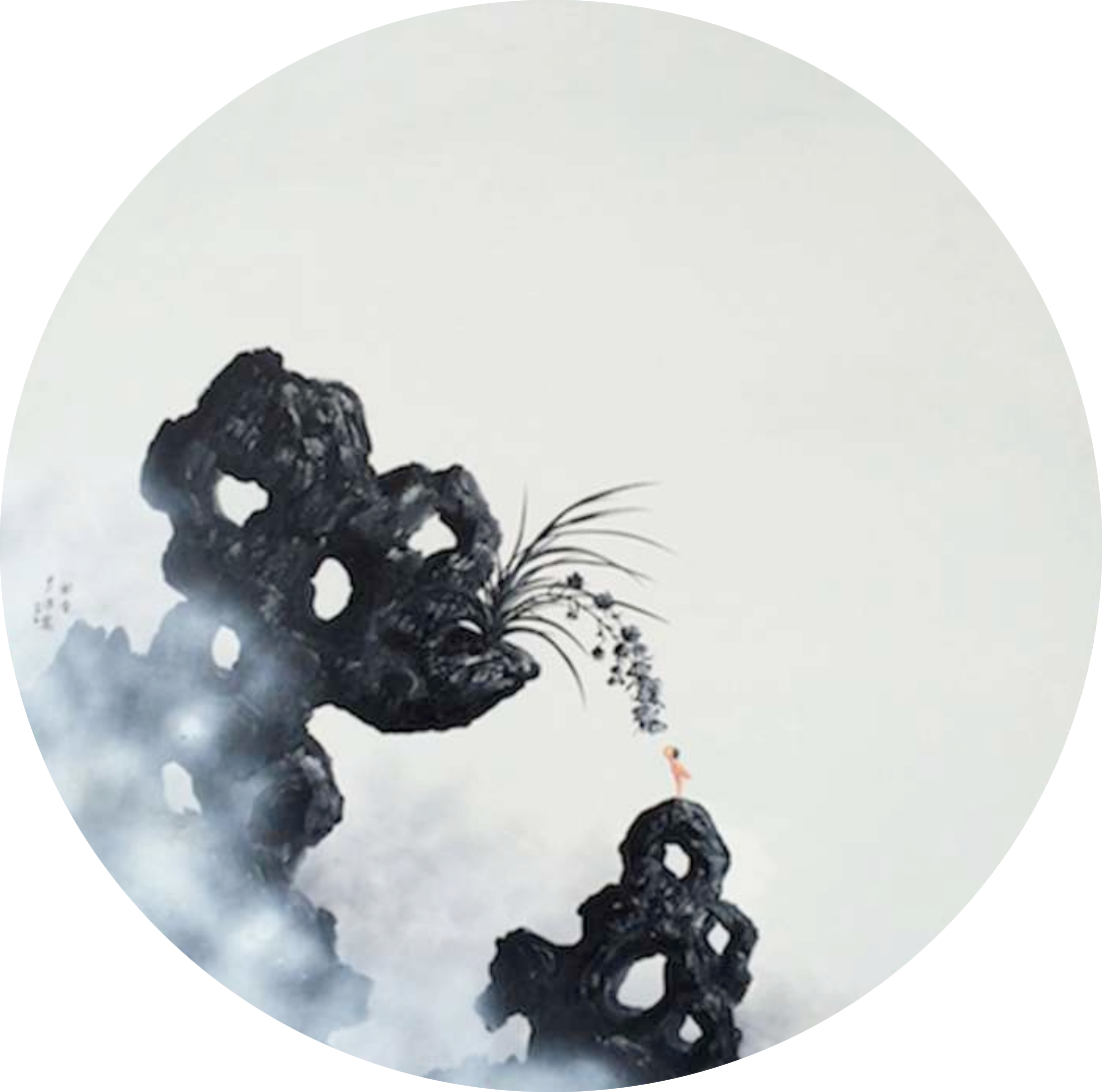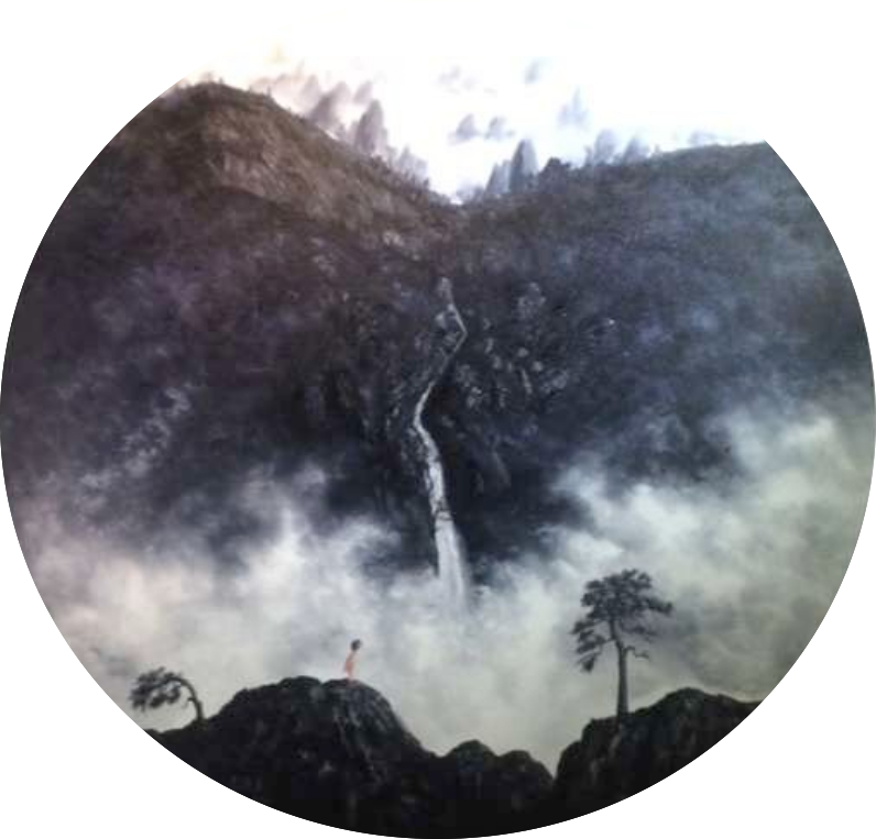 Li Zesong’s artistic practice bridges tradition and modernity, drawing deep inspiration from the rich cultural heritage and natural beauty of his hometown, Dali in Yunnan Province. Working predominantly in black, white, and grey, he creates contemporary Chinese paintings that embody the profound resonance and refined elegance of traditional ink art. His oil paintings often evoke the poetic spirit of literati landscapes, while the recurring motif of the “Little Red Figure” invites viewers into a shared contemplative space — “perhaps it is me, perhaps it is you.”
