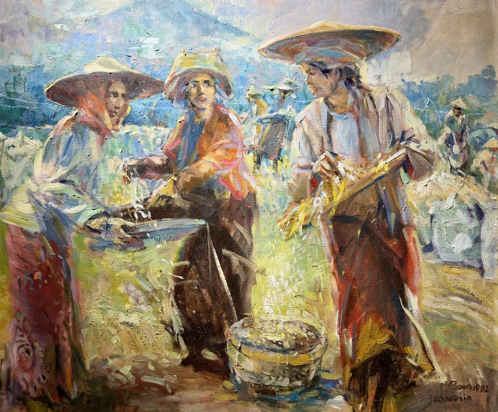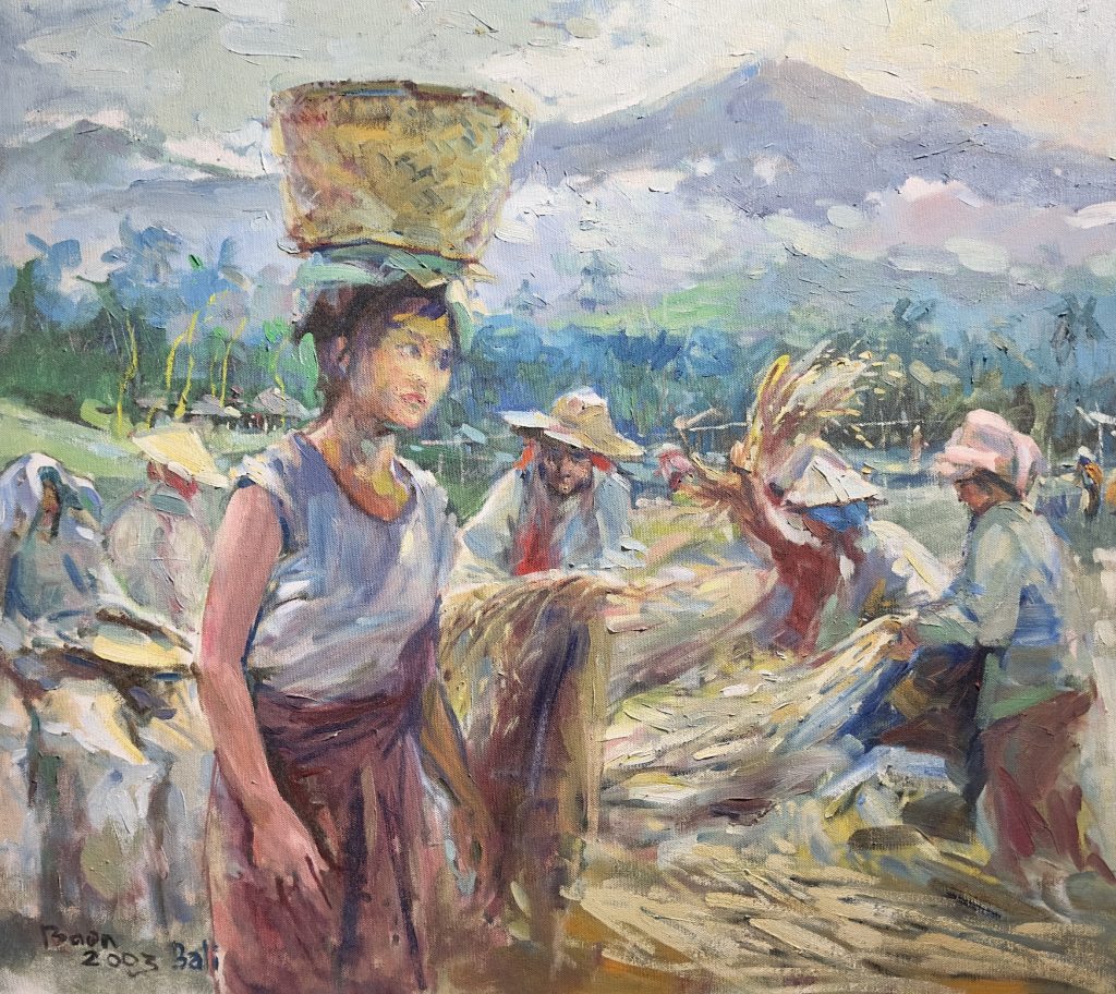 Tay’s artistic journeys frequently brought him to Bali, Malaysia, Thailand, and other parts of Asia. Through these travels, he immersed himself in the vibrant rhythms of local communities, capturing scenes such as women harvesting crops, Javanese fishing villages, and the daily labor of fishermen. His works reflect both close observation and deep empathy for his subjects.