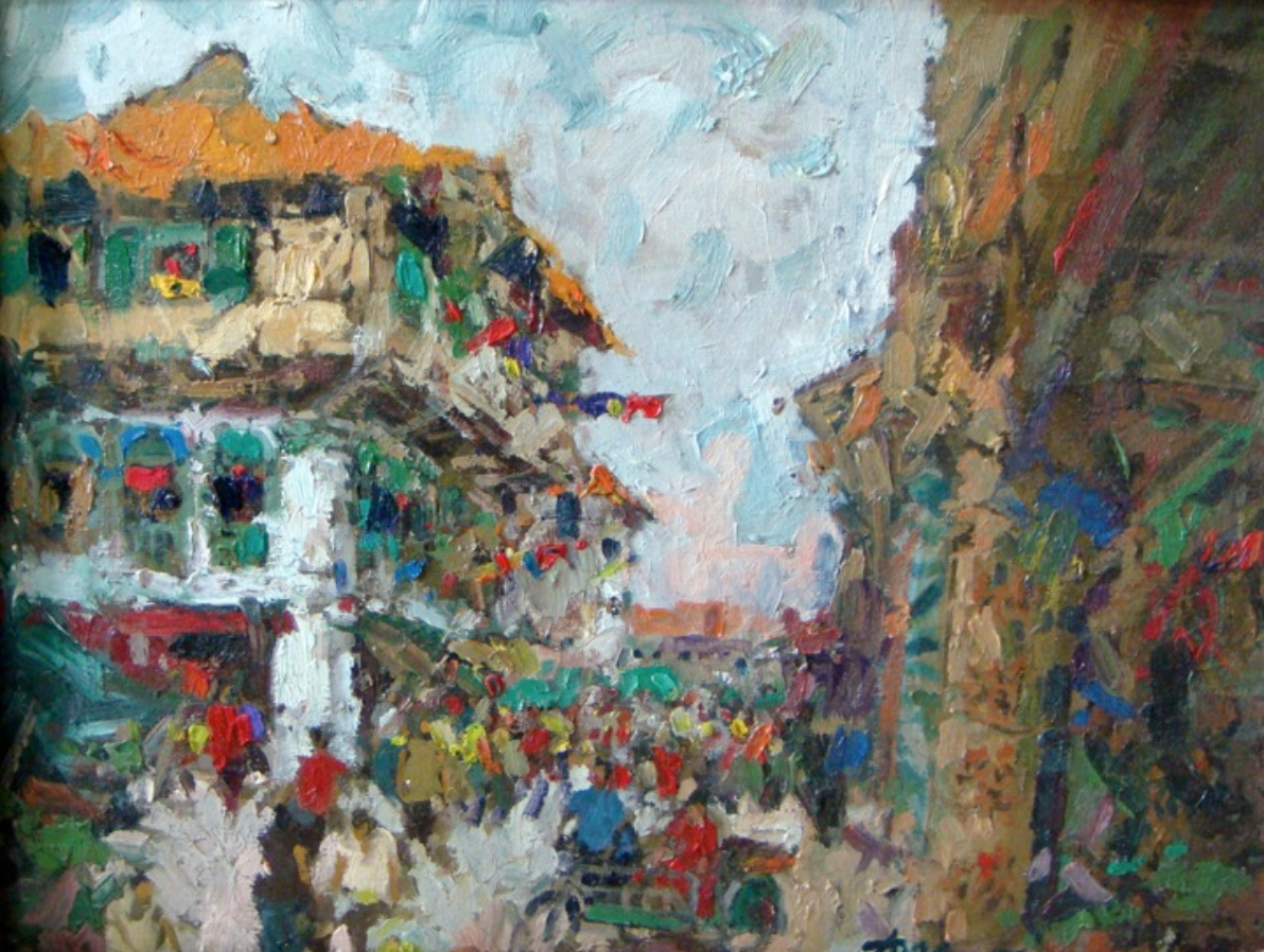 Tong’s works—whether portraying human figures or architectural structures—are distinguished by his vivid color spectrum and expressive brushwork. His compositions skillfully balance observation with emotion, capturing the essence of diverse environments with remarkable vitality and depth.