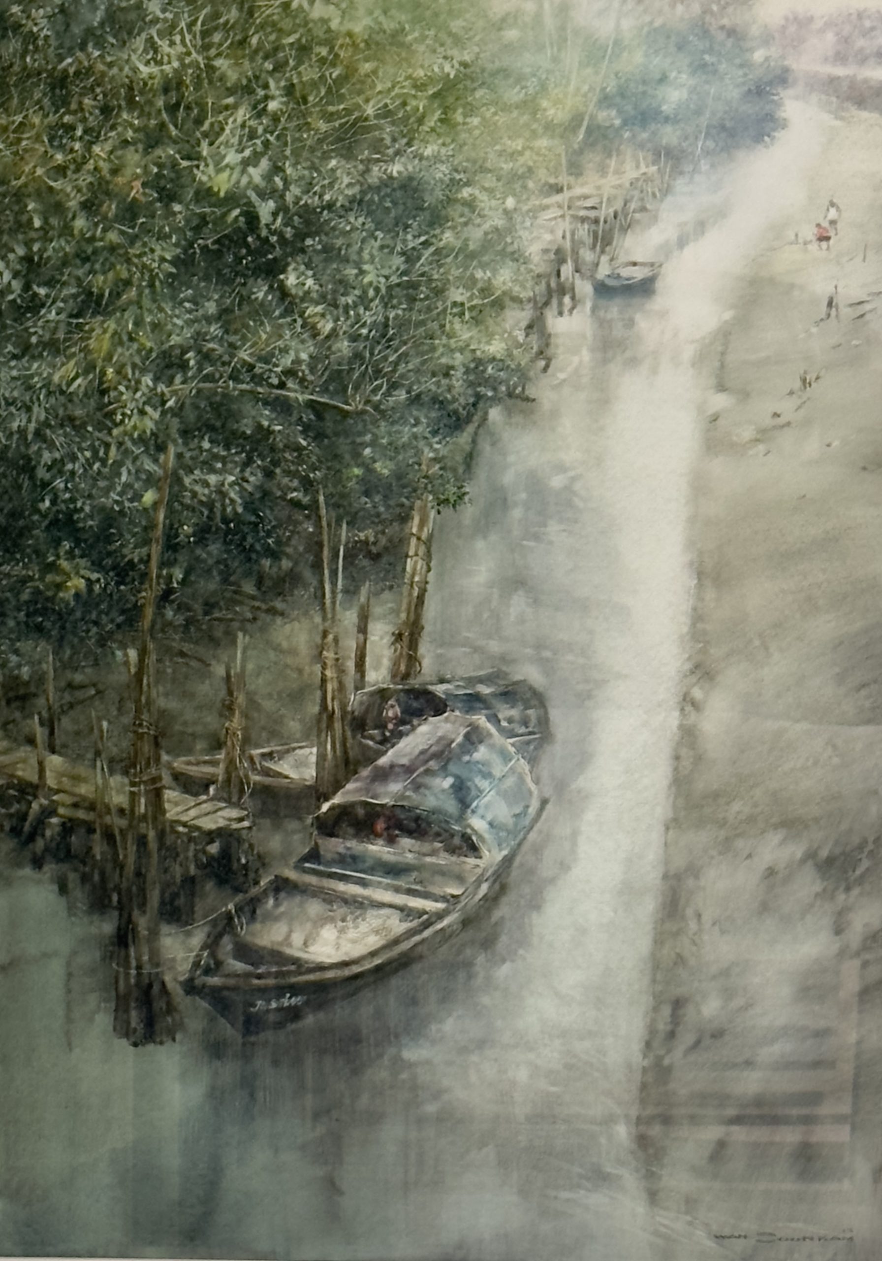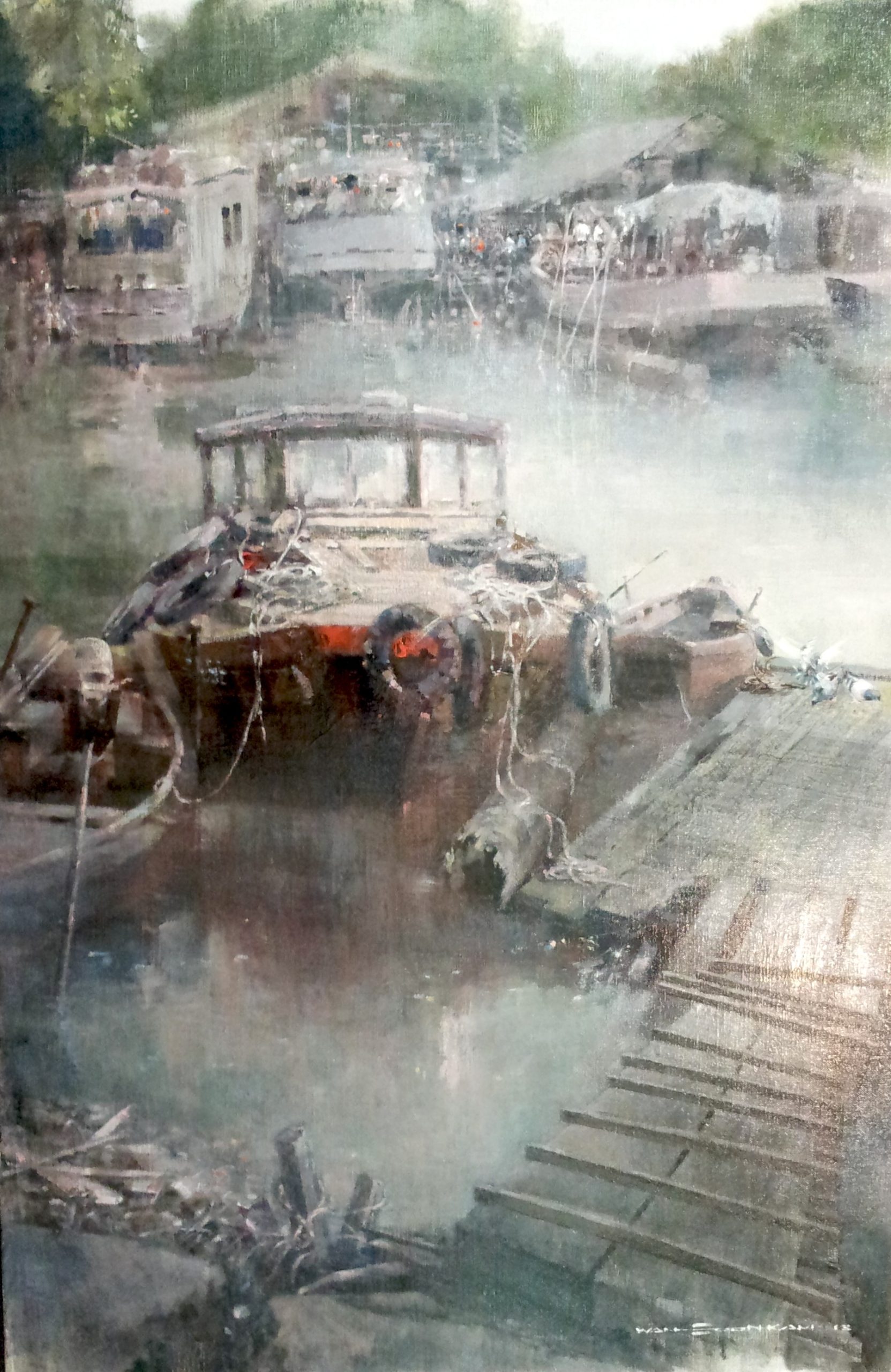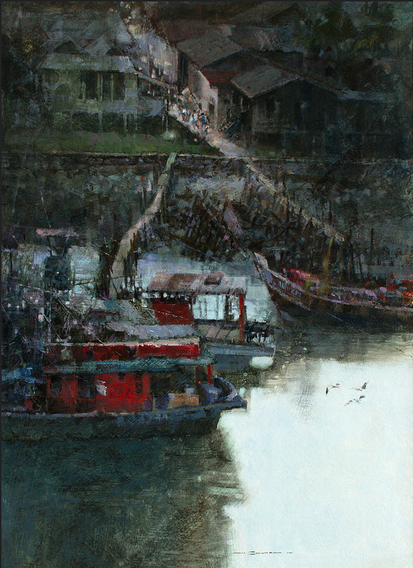 Wan Soon Kam is one of Singapore’s most respected senior artists, widely admired for his lyrical landscapes and evocative urban scenes. His paintings are imbued with a deep sense of humanism and temporal memory. Old houses, back alleys, weathered boats, and quiet natural light frequently appear in his works, gently transporting viewers to an unembellished and bygone era.